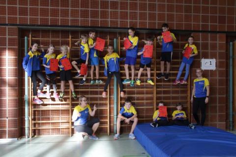 Anschließend starteten Felix Noll, Lia Cancedda und Pia Wiedenhorn für die U12. Alle drei Athleten konnten beim Weitsprung, Sprinten und Medizinballstoßen ihr Potenzial auf den Punkt abrufen. Felix sprintete in 5,3 sec über die Ziellinie, war damit Schnellster seiner Altersklasse und erreichte Platz 6 in der Gesamtwertung. Lauftalent Pia zog ebenfalls alle beim Sprinten über 30 m ab und sprang 3,57 m weit. Damit kletterte sie auf den 3. Platz.