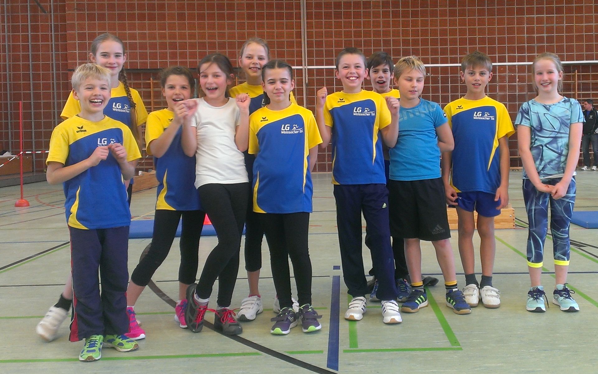 Am vergangenen Samstag präsentierten 11 Kinder der LG Weissacher Tal beim Nikolauswettkampf in Schorndorf ihr Können. Für die meisten war es der erste Wettkampf in der Altersklasse U12 und sie zeigten gute Leistungen beim 30m Lauf, Weitsprung und Medizinballstoßen. Bei den Mädchen W11 verbesserte sich Charlize Howe im Sprint über 30m auf 5,4sec und sicherte sich mit 3,27m im Weitsprung und 6,80m im Medizinballstoßen in der Gesamtwertung Platz 9. In der Klasse U12 M 11 erreichte Thilo Kienz (5,7/3,25/6,00) den 5.Platz.