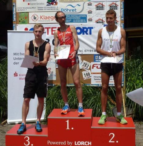 Um Punkt 10.00Uhr fiel dann der Startschuss für den Hauptlauf über die 10km Distanz. Die Temperaturen waren zu diesem Zeitpunkt schon ordentlich angestiegen und machten es den Läufern nicht einfach die ohnehin schwierige Strecke zu laufen. Daniel Ehinger (Jg. 1981) der bereits in Murrhardt auf Rang 2 hinter Johannes Weingärtner gelaufen ist musste sich leider auch an diesem Tag knapp seinem Konkurrenten Michael Sommer aus Schwaikheim geschlagen geben. Mit einer Zeit von 35:37min lief Daniel über eine halbe Minute vor dem 3. Platzierten ins Ziel.