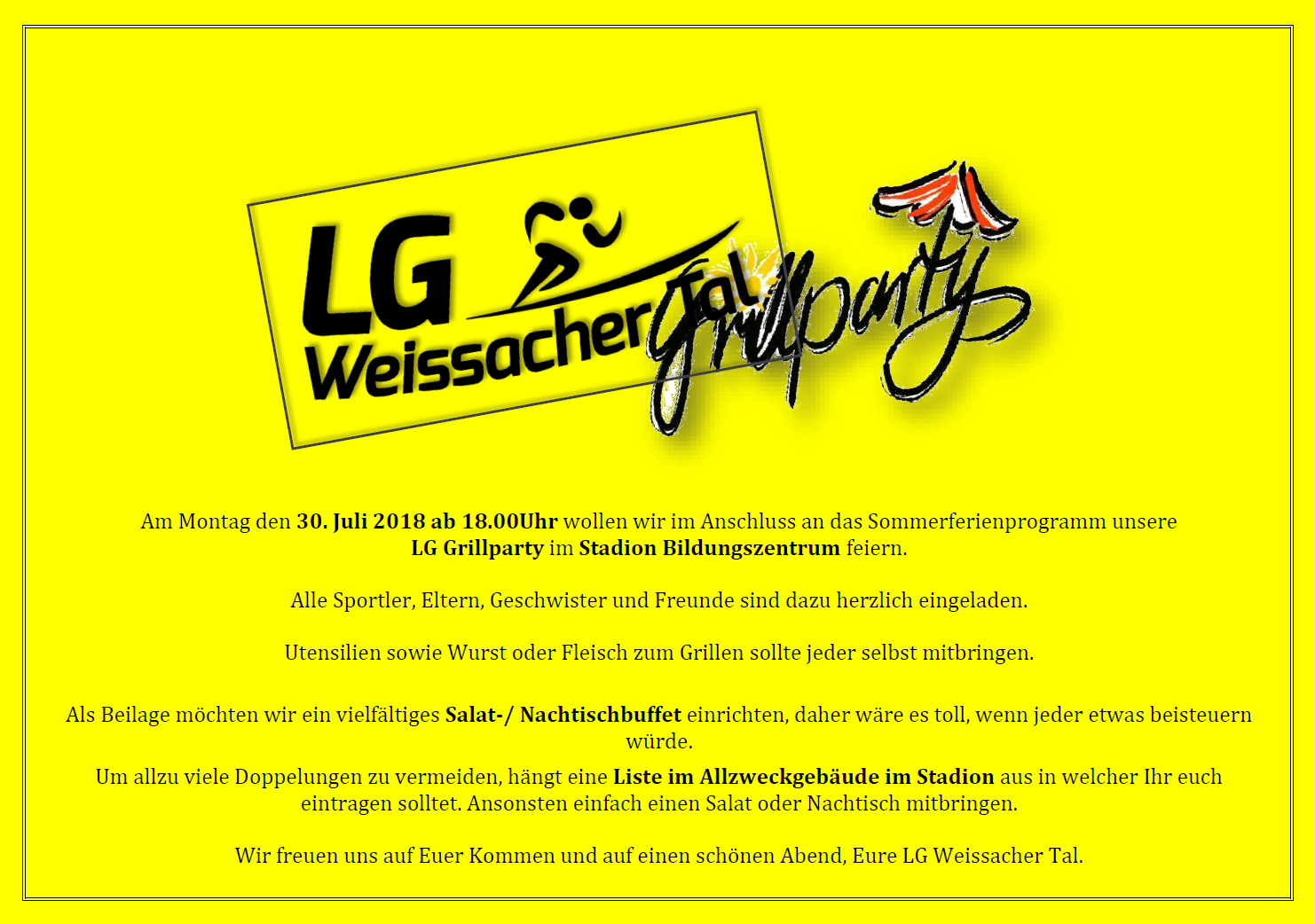 Über Salatspenden oder Nachtisch freuen wir uns! Grillgut ist selbst mitzubringen!