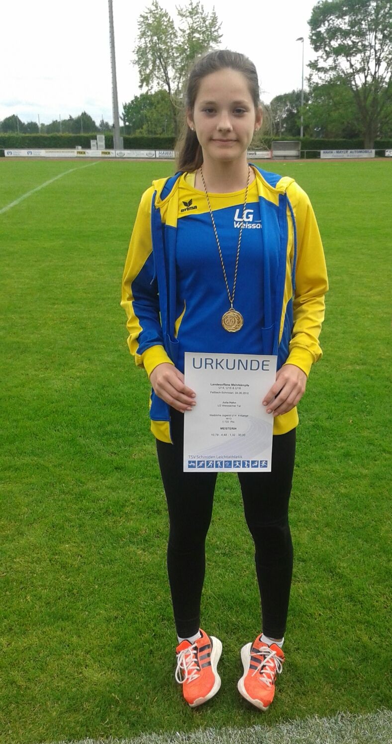 Bei den diesjährigen Kreismeisterschaften Mehrkampf in Fellbach-Schmiden am 04.06.2016 wurde Julia Hahn in der Altersklasse W13 Kreismeisterin.