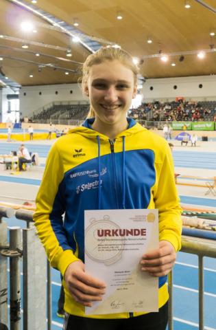 Melanie Weiß setzte im Dreisprungwettbewerb der U20,  25cm auf ihre bestehende Bestweite drauf und landete mit 10,95m auf Platz 5.