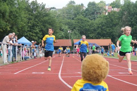 Neben Urkunden dürften die Kinder auch eine kleine Portion Weitsprung-Sand in den Schuhen und auch manche Geschichte der „großen“ Leichtathletik von Maskottchen „Leo“ oder „Lucky“ mit nach Hause gebracht haben.