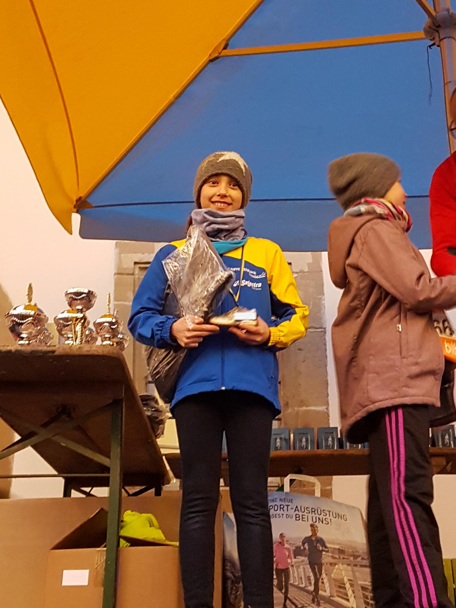 Die U14 bestand aus den Lauftalenten Madita Müller, Clara Heine, Fabian Huber und Rebecca Friederich.  Rebecca lief mit einer Zeit von 10:58min auf den 4. Platz. Direkt dahinter erreichte Madita den 5. Platz mit einer Zeit von 11:30min. Als nächstes kam Clara ins Ziel. Sie erlief sich den 8. Platz mit 11:43min. Fabian kam mit 11:00min auf den 14. Platz.