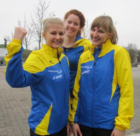 Bild: Blicken frohen Mutes den nächsten Wettkämpfen entgegen: v.l. Pia Wurst, Trainerin Sinje Kühnert und Kathrin Wurst