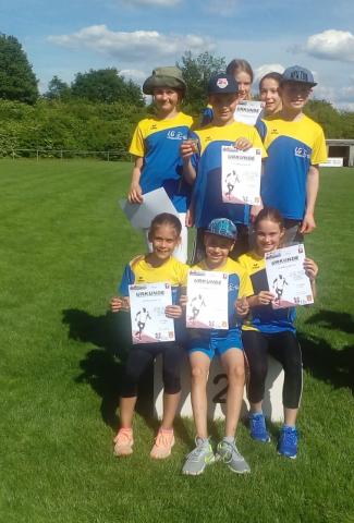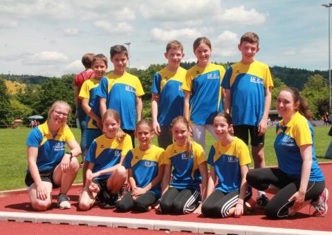 Hoch motiviert starteten Jule Hilkert, Ilvie Reutter, Max Schützle, Lia Cancedda, Laurin Mennicken, Pia Wiedenhorn, Samuel Friederich, Stella Hofmann und Moritz Wend am zweiten Team Liga Wettkampf in Urbach am 01. Juni. Direkt bei der ersten Disziplin, dem Hochweitsprung setzten die Nachwuchstalente ein Ausrufezeichen. Besonders Moritz und Pia überzeugten mit sehr weiten Sprüngen. Trotz der enormen Hitze pulverisierte die Mannschaft neue Bestzeiten beim anschließenden 50 m Sprint. So entstand der neue Slogan „Wir sind trotz Hitze, spitze!“. Nach anfänglichen Unstimmigkeiten bei der Staffelholzübergabe fanden die Kids ihren Rhythmus beim Staffellauf und holten dabei ordentlich Punkte. Nachfolgend konnte vor allem Max beim Kugelstoßen überzeugen. Zum Schluss liefen alle Athletinnen und Athleten zwei Runden auf der Finnenbahn und setzten sich dank eines Schlusssprints von Samuel und Laurin gegen die anderen Mannschaften durch. Völlig verdient und zugleich überrascht durfte sich das Team über den exzellenten 2. Platz freuen. Bei der anschließenden 4 x 50 m Staffel mobilisierten Lia, Ilvie, Jule und Pia nochmal alle Kräfte und erreichten mit einer hervorragenden Zeit von 33,4 Sekunden Platz 6. Wir gratulieren zu diesen herausragenden Ergebnissen und freuen uns sehr auf den kommendem Wettkampf am 7.Juli im eigenen Stadion.