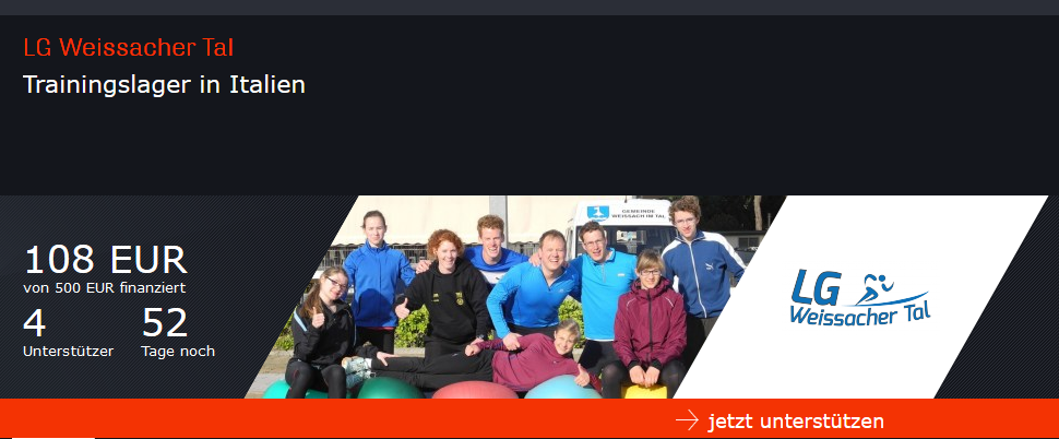 Auf der neu gegründeten Plattform "fairplaid.org" hat die LG Weissacher Tal ein Projekt zur Unterstützung des nächsten Trainingslagers eingestellt.